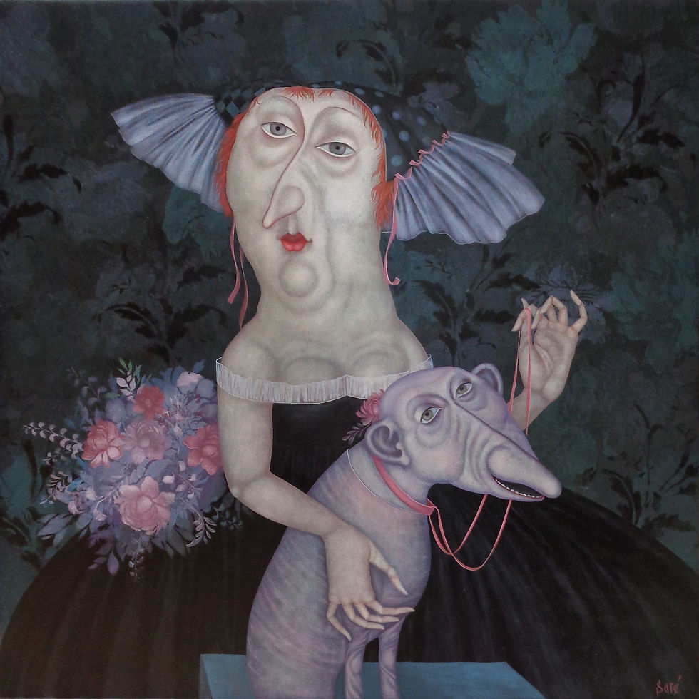 3942 "La dame au chien" Huile sur toile, 92x46 cm